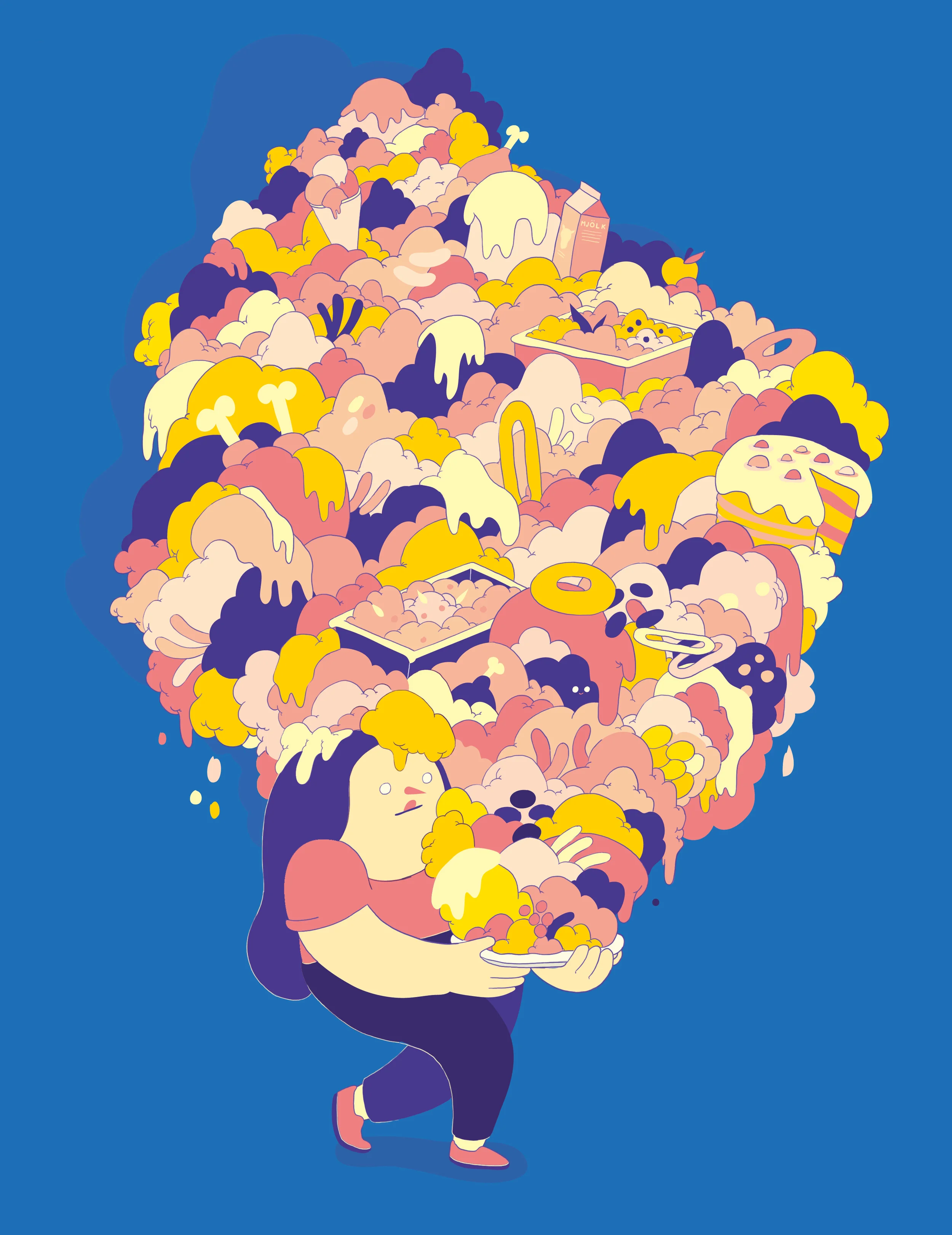 This is an illustration for IMAGE magazine about the buffet eating culture of our times, where nothing is enough.